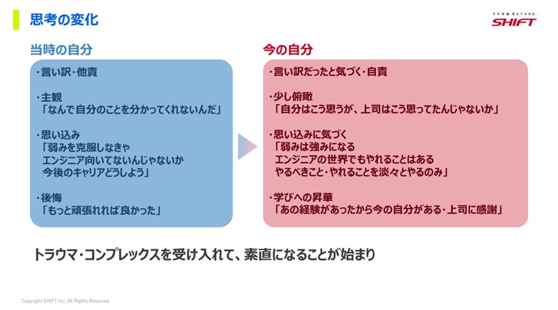本記事では「トラウマ・コンプレックスを乗り越え、成長への道筋を見出す」と題し、SHIFTモビリティサービス部の田代が登壇した内容をお届けします。