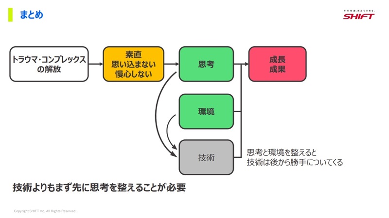 ですが、思考さえ整っていれば、技術は後から勝手についてきます。なので、技術を磨くより先に、まず思考を整えることが大事だと思います。