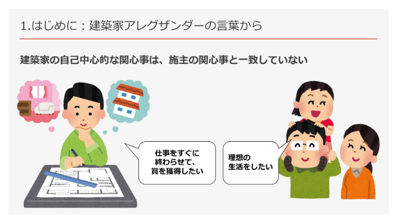 それは、“施主がどのように生活したいか”という情報だ」と指摘しています。
