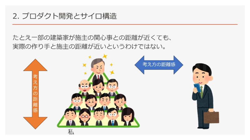 エンジニアが施主の関心から遠ざかるのは、構造的な問題に起因する。そして、その構造を変え、施主に近づくことこそが重要なのだと。