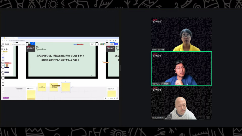 小田中:いま、お二人の話を聞いていて面白いと思ったのが、3人とも「ふりかえりは何のためにやるのか?」という問いに対して、当たり前のように「未来」の話をしている点です。