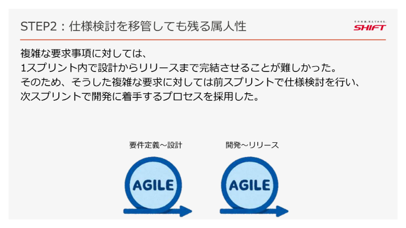 ところが、「仕様検討」が、新たな属人化を生んでしまったのです。仕様検討は、チームの誰もが担当するものと想定していましたが、実際には「得意な人」や「やりたい人」に作業が偏ってしまいました。