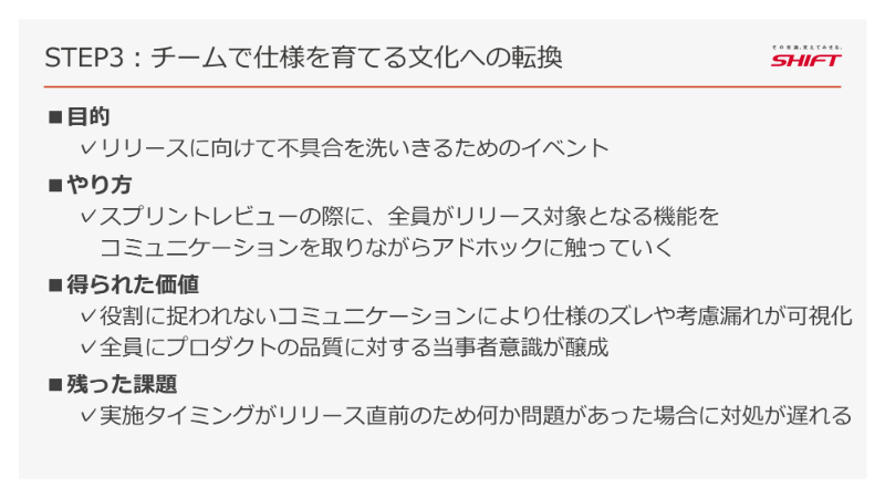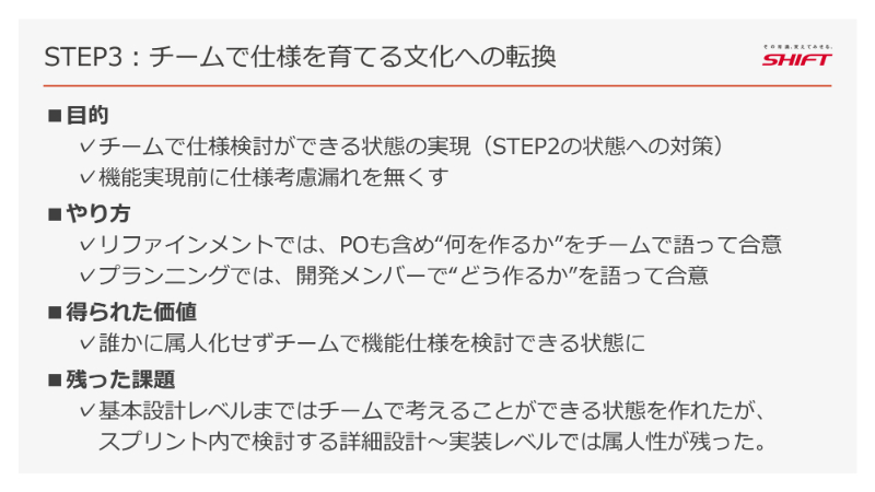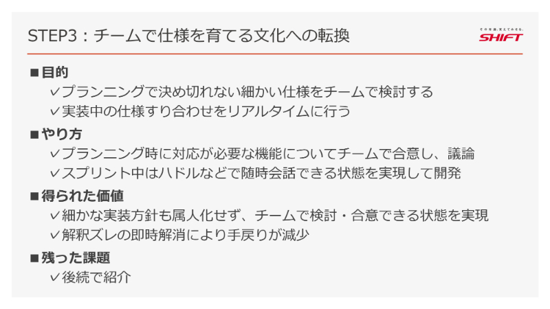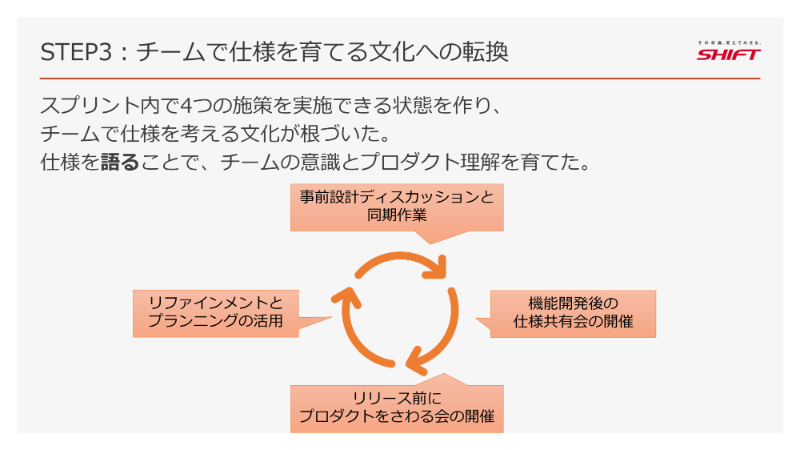 必要なのは、チーム全員で仕様を語り合い、ともに考えるための「仕組み」と「文化」を意図的につくることだったのです。