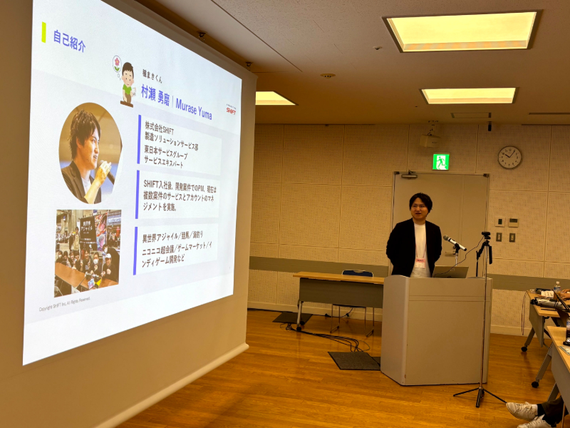 SHIFTからは、製造ソリューションサービス部でサービスエキスパート(SEP)(※)を務める村瀬 勇磨が登壇し、同部にアジャイル文化を醸成した実践例について共有しました。