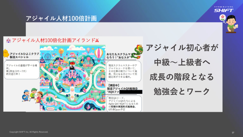 部の目標に「品質保証エンジニアをアジャイルQAに育てる」「アジャイル支援サービスで価値提供できる組織になる」という項目があったことを活かし、このアジャイル人材100倍計画を打ち立てたのです。