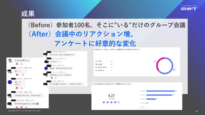 今回の成功は、私個人の情熱だけに起因するものではありません。SHIFTという会社がもつ「変革に対してNoといわない」組織基盤や評価制度と、私のアジャイルなアプローチがうまく融合した結果です。