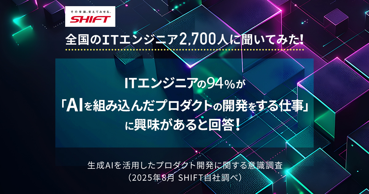 ITエンジニアの94%が「AIを組み込んだプロダクトの開発をする仕事」に興味があると回答!全国のITエンジニア2,700名へのアンケート結果